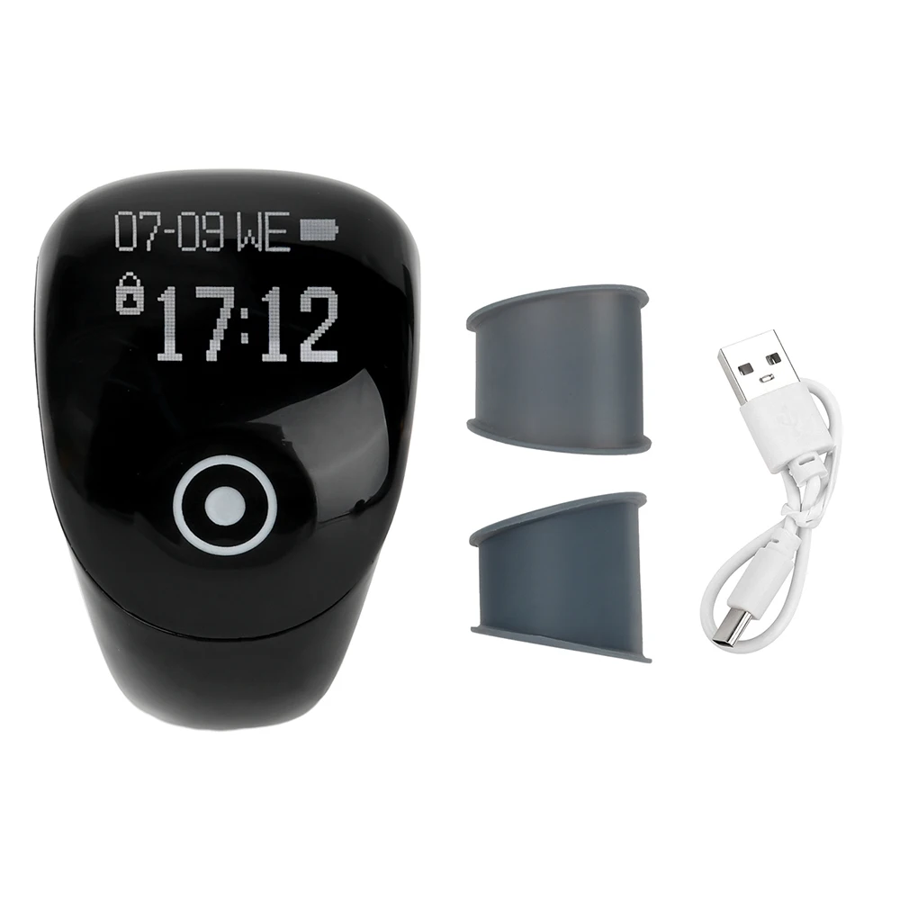 This device has an adjustable elastic strap that fits comfortably on any finger. It ensures a secure hold during movement and allows for hands-free operation, enabling convenience during extended use.